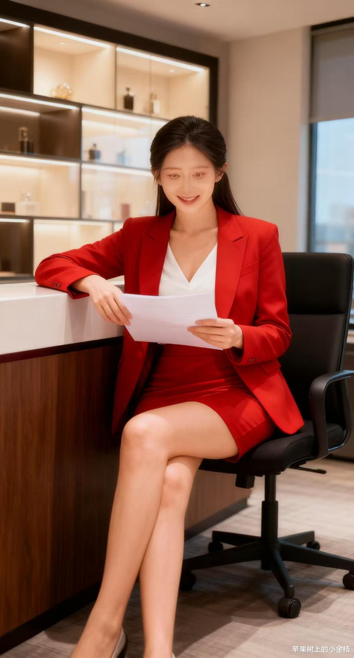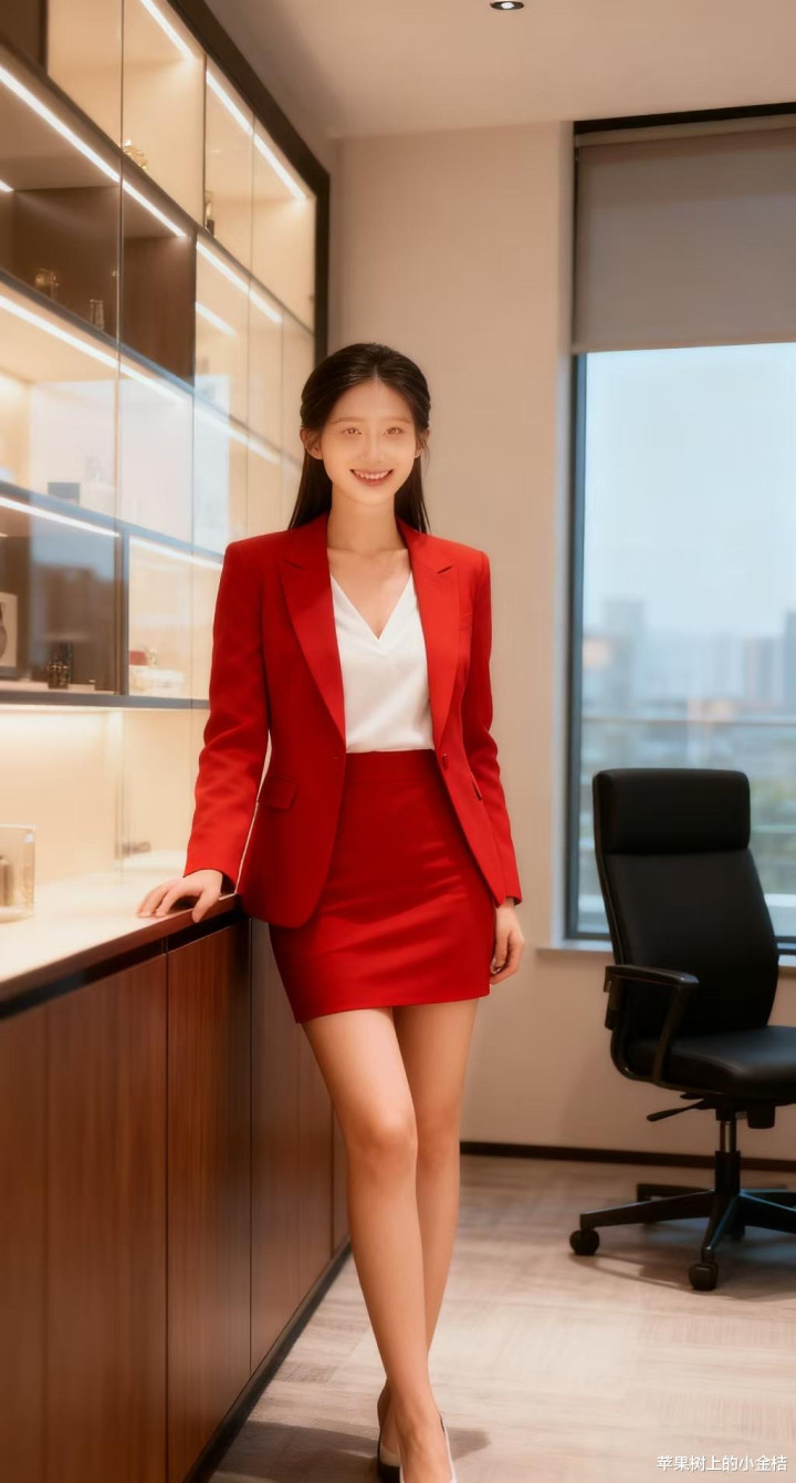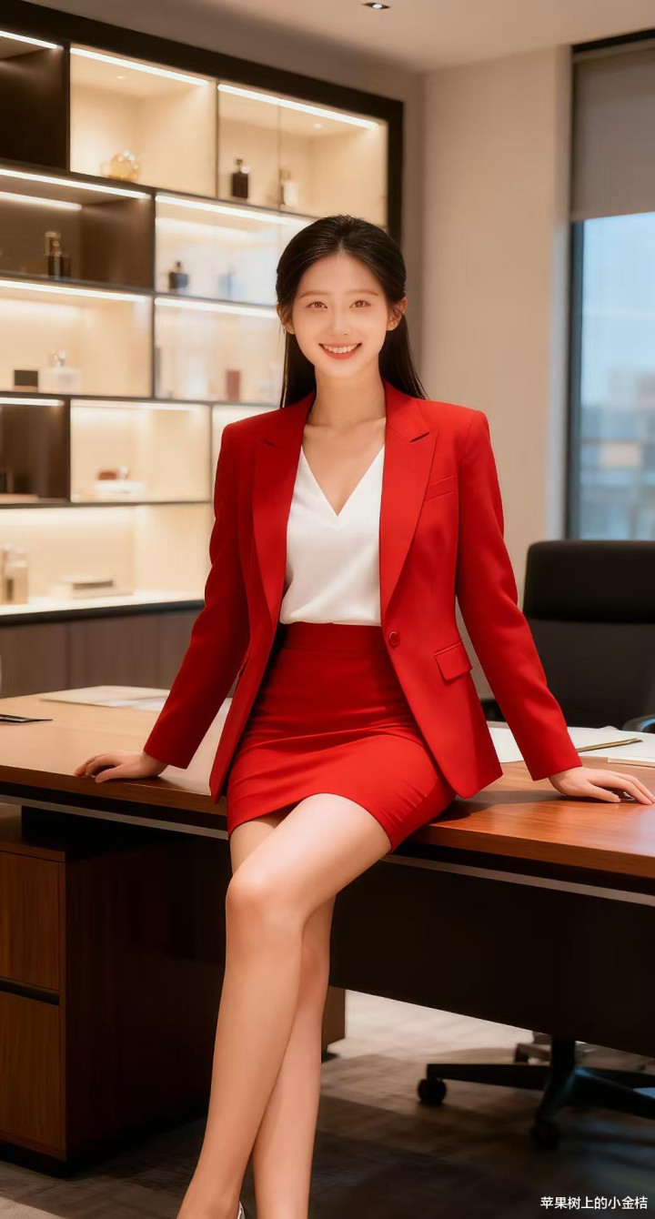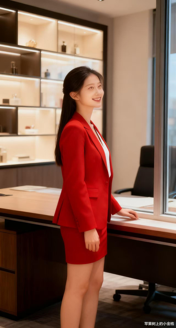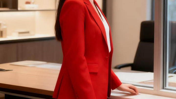 酒红色职场西装套装, 鲜艳夺目, 气质非凡。